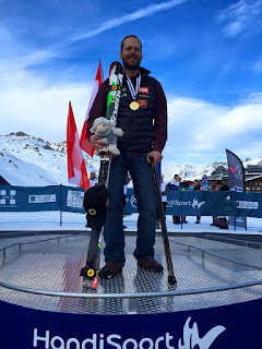So I guess I should start with the 2014-15 season and simply sum it up by saying it was a complete and total bust. There were about one or two decent results in downhill but overall it was a disaster and we can more or less chalk it up to getting used to a new sit ski and being suck in the rut of old bad habits of skiing like crap. But the 2015-16 season was the complete opposite. The season started a bit bumpy with the opening IOC races which saw me get disqualified in a super combi race and missing out on a 3rd place finish because I skied around the wrong side of the last gate. But after that and with the start of the World Cup season things drastically changed. I won the opening world cup GS in Kranjska Gora Slovenia by a respectable margin and went on to place in the top 8 of all other WC technical races that I finished for the rest of the season. But where I really excelled was in Downhill in which I won 3 out of the 4 Downhills and finished 2nd in the only one i didn't win which was enough to garner me the Overall Downhill IPC World Cup crystal globe. I also went on to win second overall in GS for the season as well as place 3rd overall across all events. Bringing my overall IPC World Cup medal tally to 8 for the season.